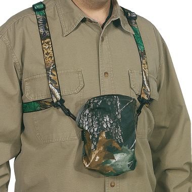 Grab the Pro Harness/Soft Cover Combo, save money and enjoy the benefits of both our Pro Binocular Harness and Soft Cover in this special value combination package. Two great products that save your neck and shoulders, protect your binoculars, and make them easier to use at one great price. Eliminate fatigue caused by carrying binoculars around your neck, plus have your optics ready to slide up for instant use with the Bino-System. The weight of the binoculars rides on your shoulders, supported by wide, comfortable, elastic straps; neck muscles are never under strain. Adjustable straps also help steady your viewing by keeping moderate tension applied, important when using high-powered optics. Attachment and removal are fast and simple using the rugged nylon security hooks. Our Soft Cover protects your ocular lenses from precipitation, breath-fogging and debris, and quickly flips out of the way when it's time to glass. Crafted of rugged, yet soft and silent polyester material. Fits snug with an elastic strap. Color/model: Camo/Roof Prism, Camo/Porro Prism. Read more customer reviews ...
