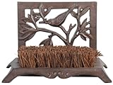Esschert Design USA BR08, This charming boot brush and scraper is a decorative addition to any porch or patio area. Use the top of the boot scraper to get rid of mud and clumps of dirt, while the brush helps to remove the rest of the dirt and dust so it doesn't get tracked inside. Made of durable powder coated cast iron, this scraper and brush will last for years and the bird and leaf design makes an attractive addition to any porch or entryway. Brush and scraper measure 11.6-inch by 7.4-inch by 7.9-inch. ...