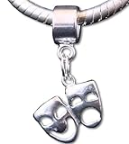 Katie's Charms , NEW Sterling Silver dangle charm bead. Fits all popular styles of European bead bracelets such as Pandora, Biagi, Chamilia and Troll. For the thespian or theater lover in your life, a shiny comedy / tragedy mask charm to represent their love of the theatrical arts. 23mm x 15mm. Hole is 5mm in diameter. Marked for sterling silver. Although not made by Pandora, Biagi or Chamilia, this bead is compatible with these and other European Bead bracelets. ...