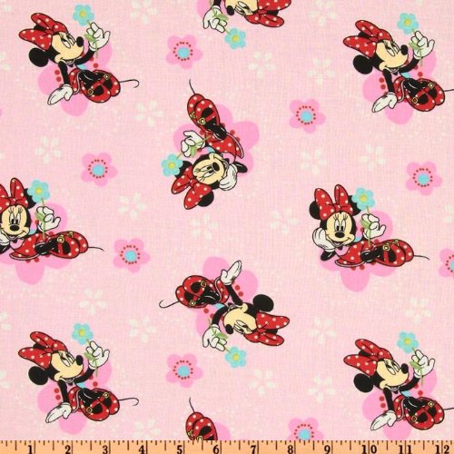 Licensed by Disney for Springs Creative Group this cotton print fabric features Minnie Mouse and flowers. Colors include red black aqua and cream on a pale pink background. Read more customer reviews ...