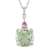 Here are some of the great features of 10k White Gold, Diamond, Green Amethyst and Pink Topaz Pendant with Chain, (.01 cttw, GH Color, I2-I3 Clarity), 17"